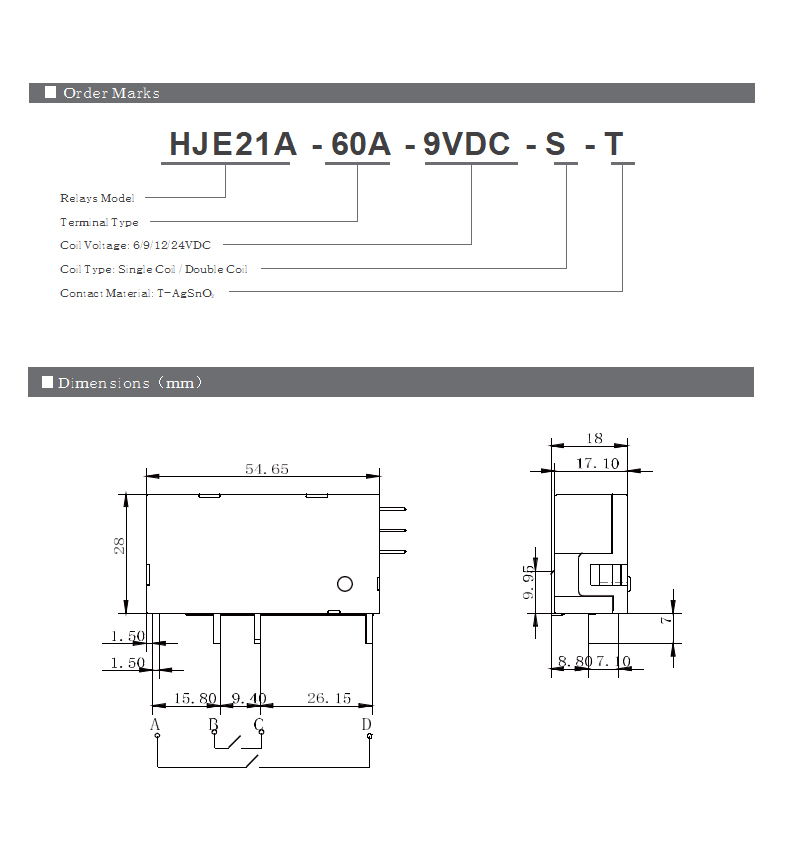 2、为了保持继电器的“开”或“关”状态,线圈电压应达到额定电压。脉冲宽度应为操作时间的5倍,以确保状态的正确变化。请勿在双线圈上同时为 T1、T2 和 T3 通电,或给线圈通电超过 1 分钟(可能会损坏线圈)。