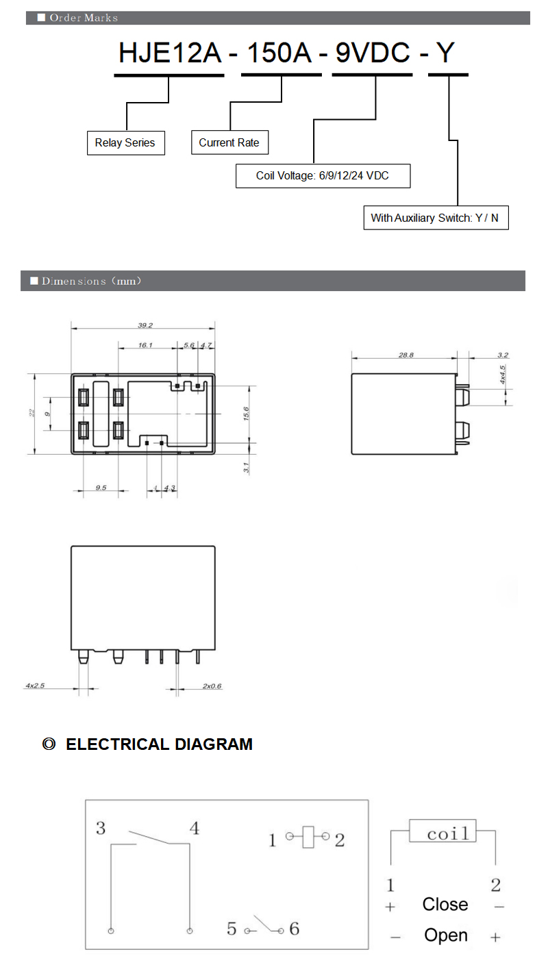 | 线圈电压 | 6VDC | 9VDC | 12VDC | 24VDC |